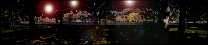 Composite photo. USAF K-9 and Handler watch flares drift lazily, across the waters toward Monkey Mountain. 1966.